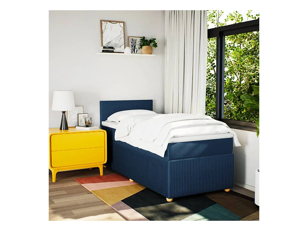 Sommier à lattes de lit avec matelas bleu 90x190 cm velours