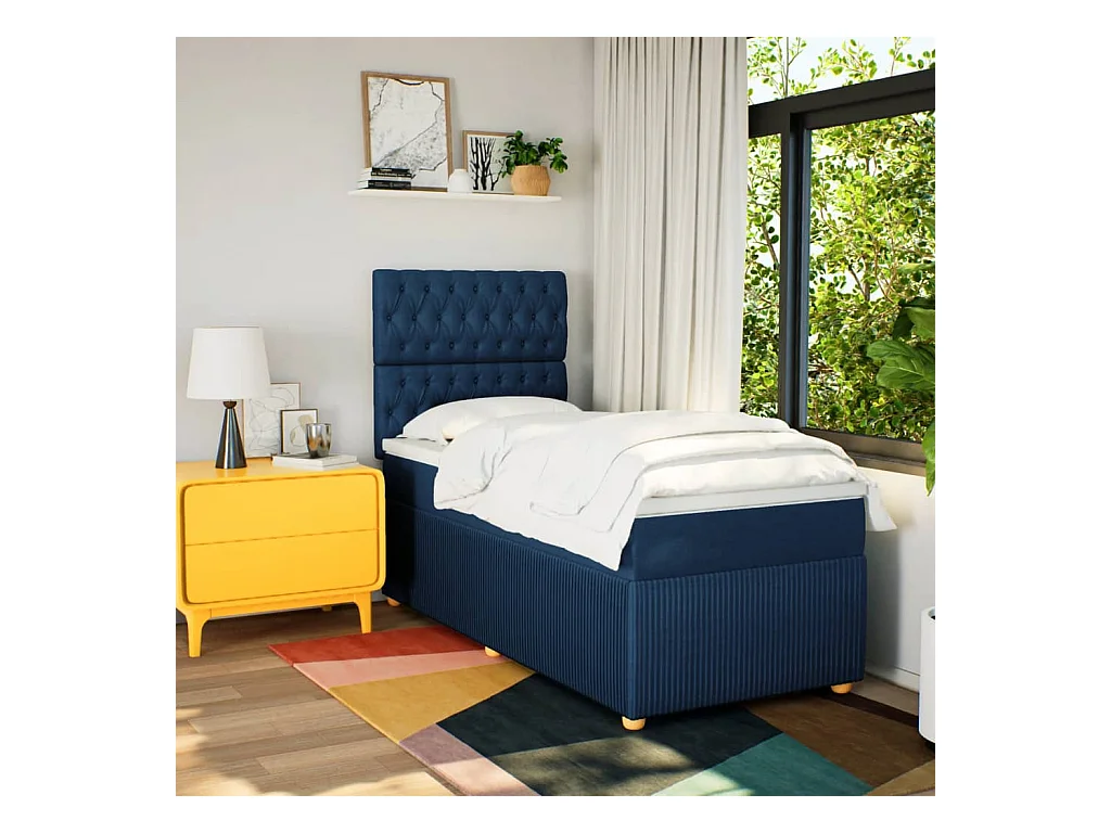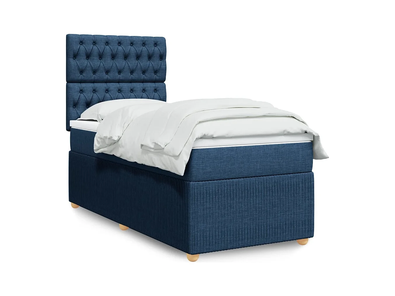 Sommier à lattes de lit avec matelas Bleu 90x190 cm Tissu