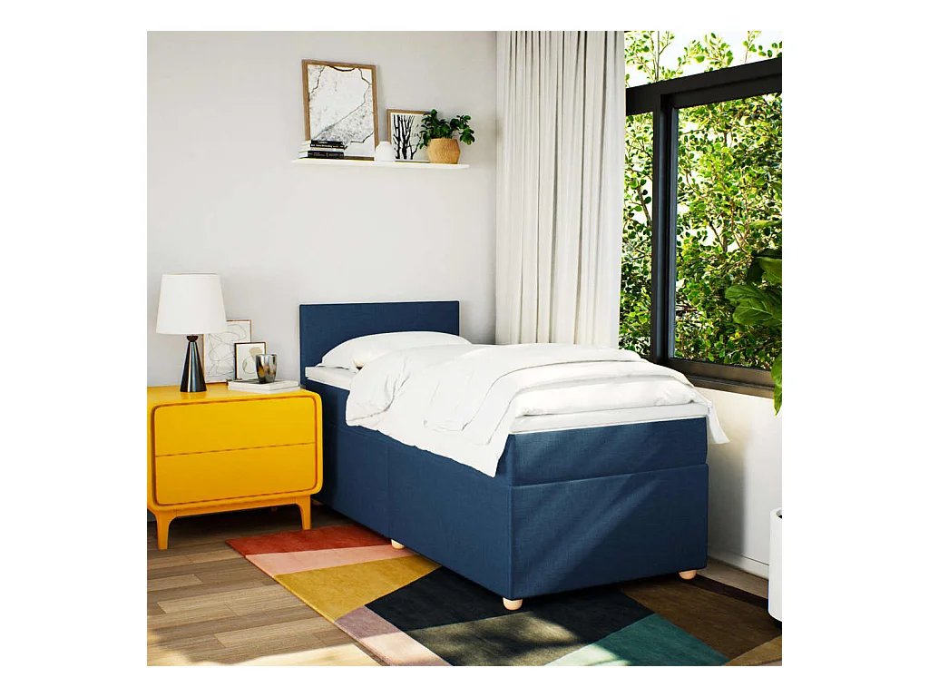 Sommier à lattes de lit avec matelas Bleu 90x200 cm Tissu