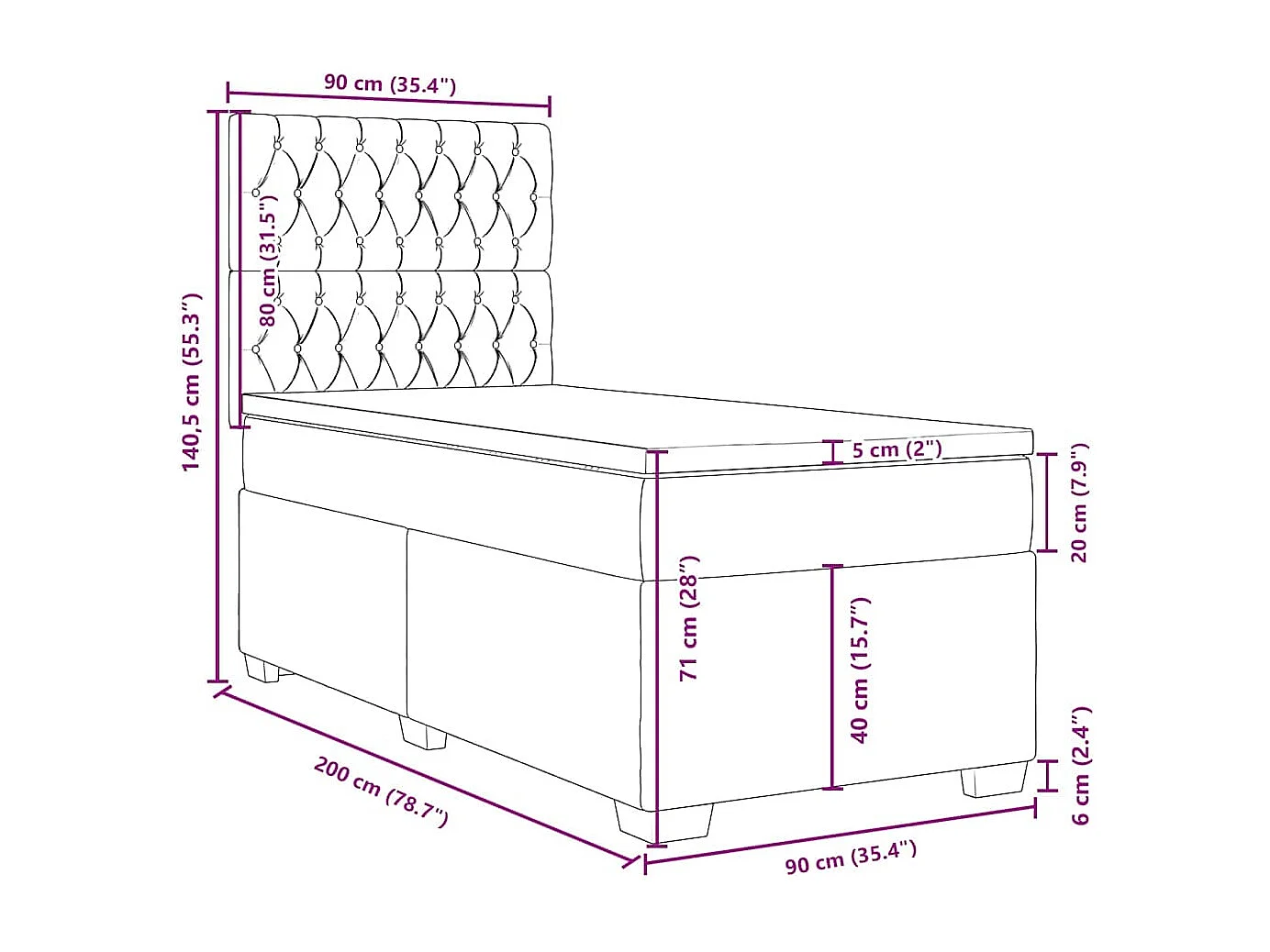 Sommier à lattes de lit avec matelas bleu 90x200 cm velours