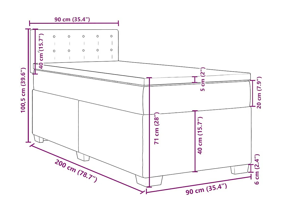 Sommier à lattes de lit avec matelas bleu 90x200 cm velours