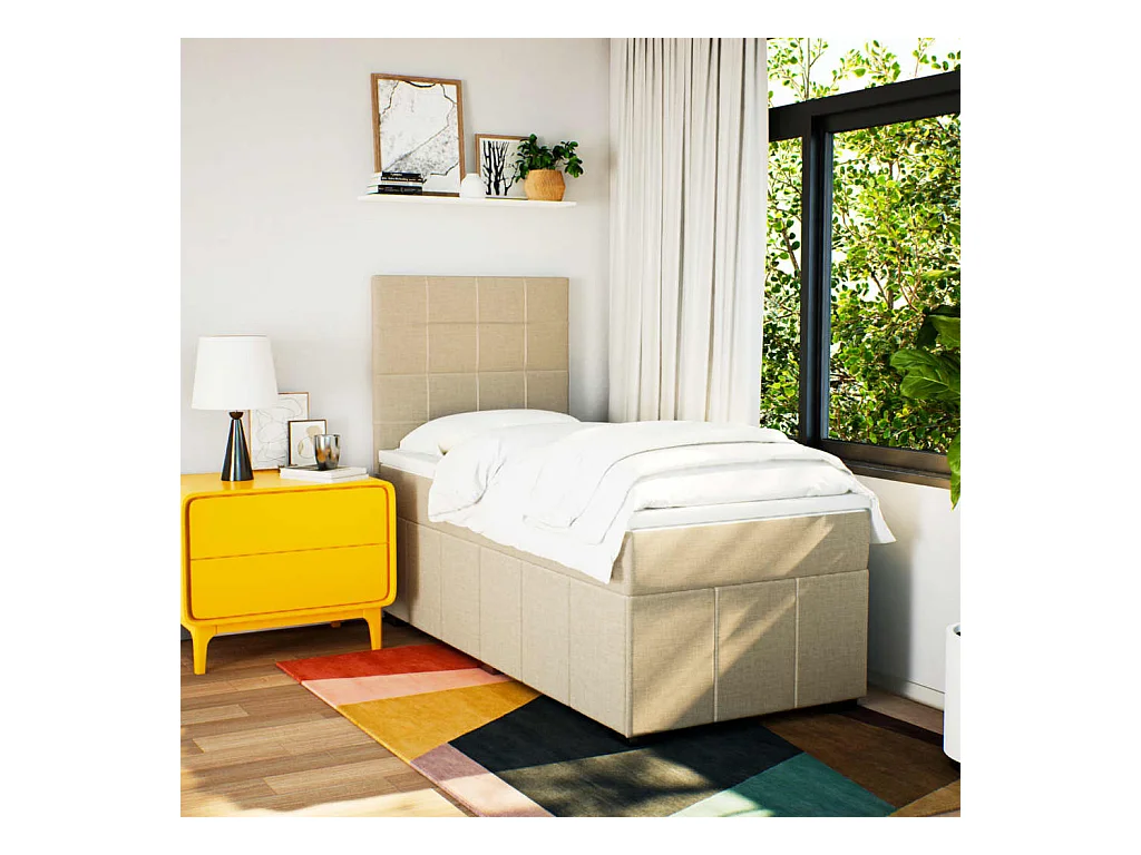 Sommier à lattes de lit avec matelas Crème 100x200 cm Tissu