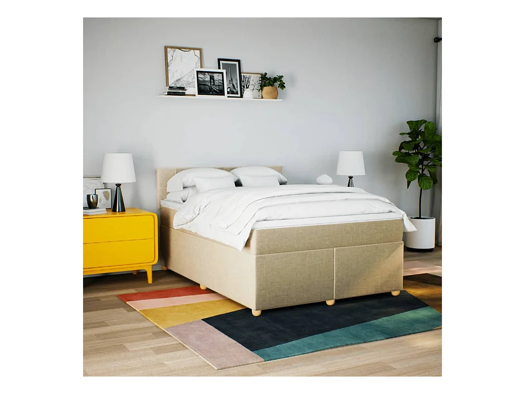 Sommier à lattes de lit avec matelas Crème 140x200 cm Tissu