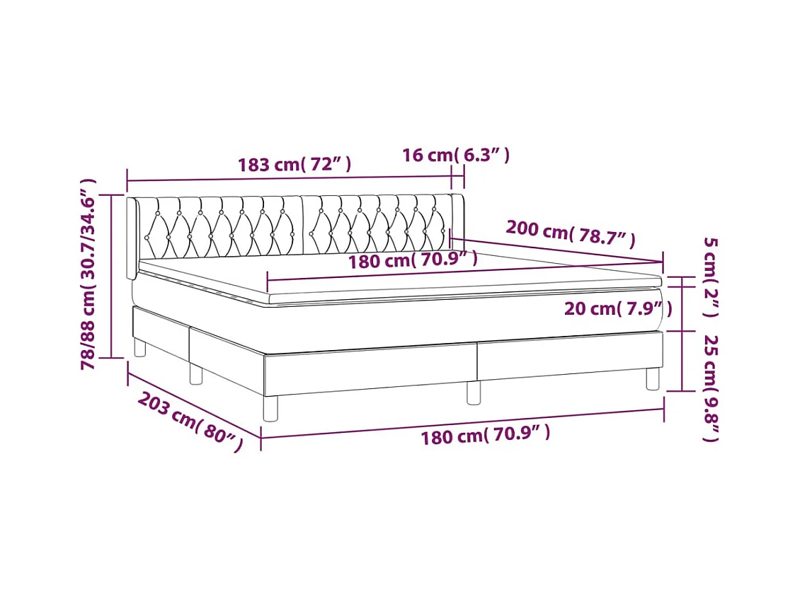 Sommier à lattes de lit et matelas et LED Crème 180x200cm Tissu
