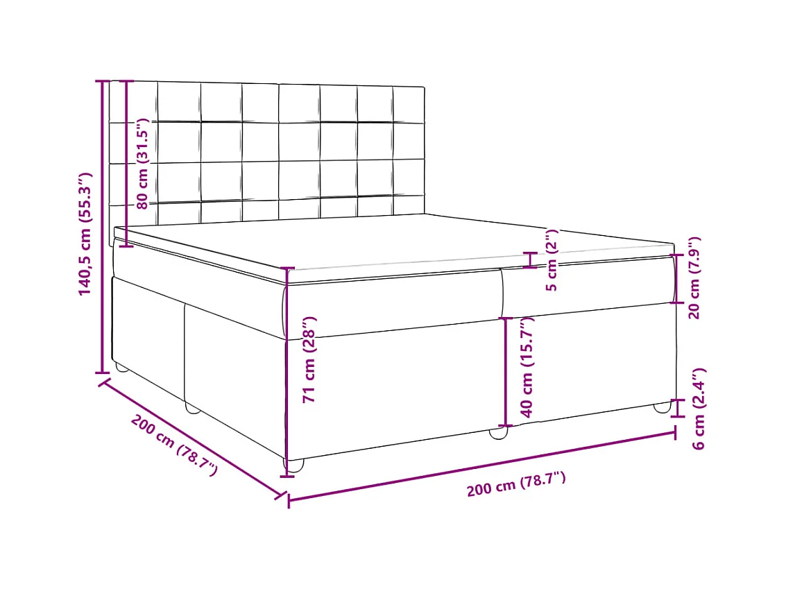 Sommier à lattes de lit avec matelas Crème 200x200 cm Tissu