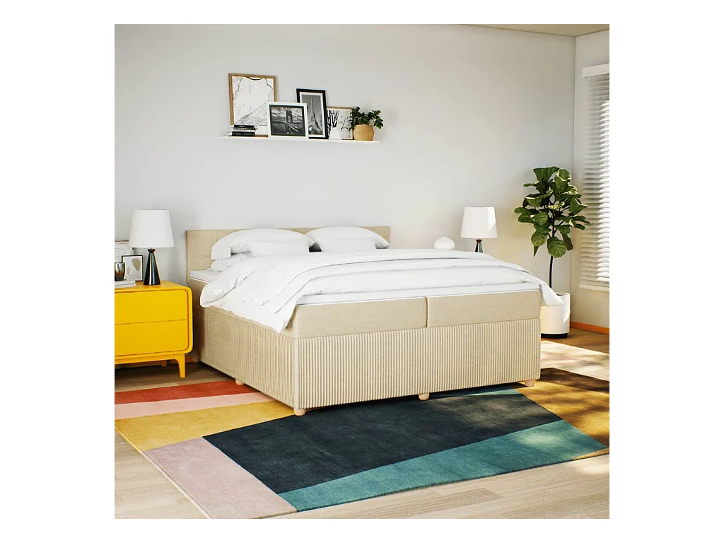 Sommier à lattes de lit avec matelas Crème 200x200 cm Tissu