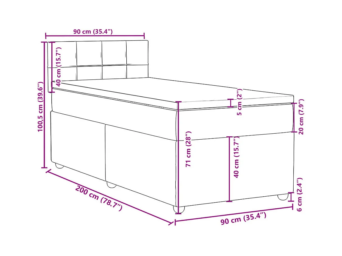 Sommier à lattes de lit avec matelas Crème 90x200 cm Tissu