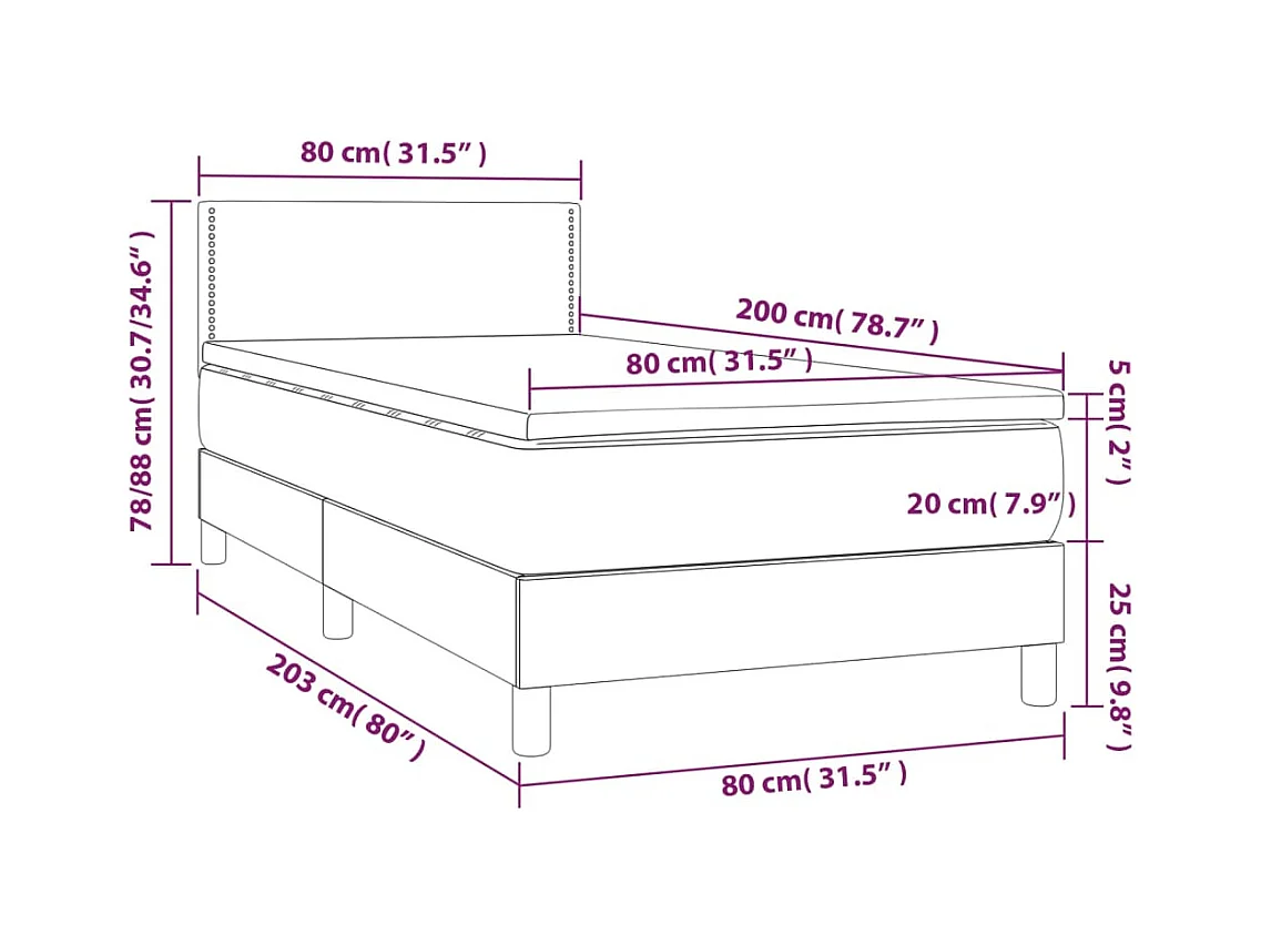 Sommier à lattes de lit et matelas Noir 80x200 cm Velours