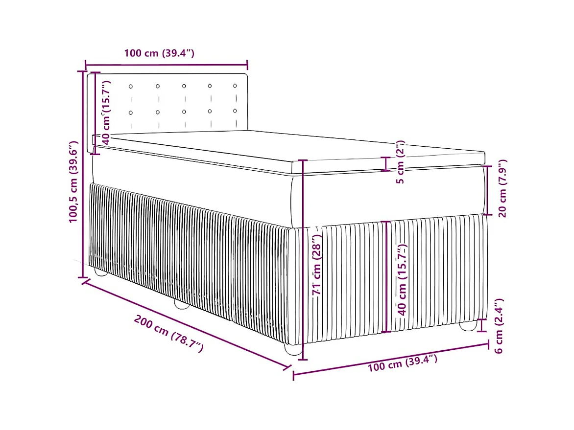 Sommier à lattes de lit avec matelas Gris foncé 100x200cm Tissu