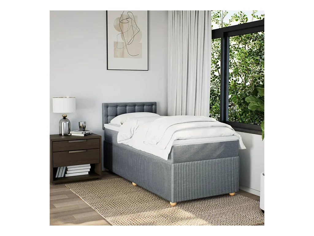 Sommier à lattes de lit avec matelas Gris clair 100x200cm Tissu