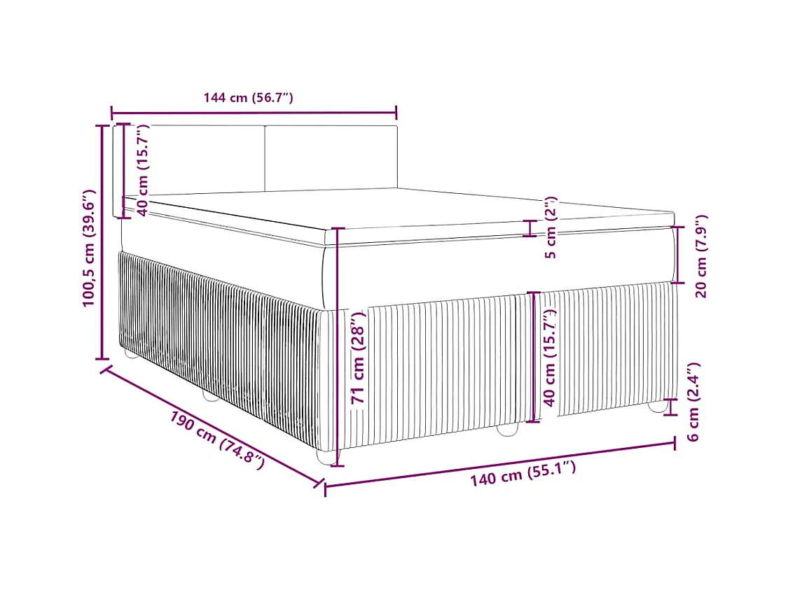 Sommier à lattes de lit avec matelas Gris foncé 140x190cm Tissu