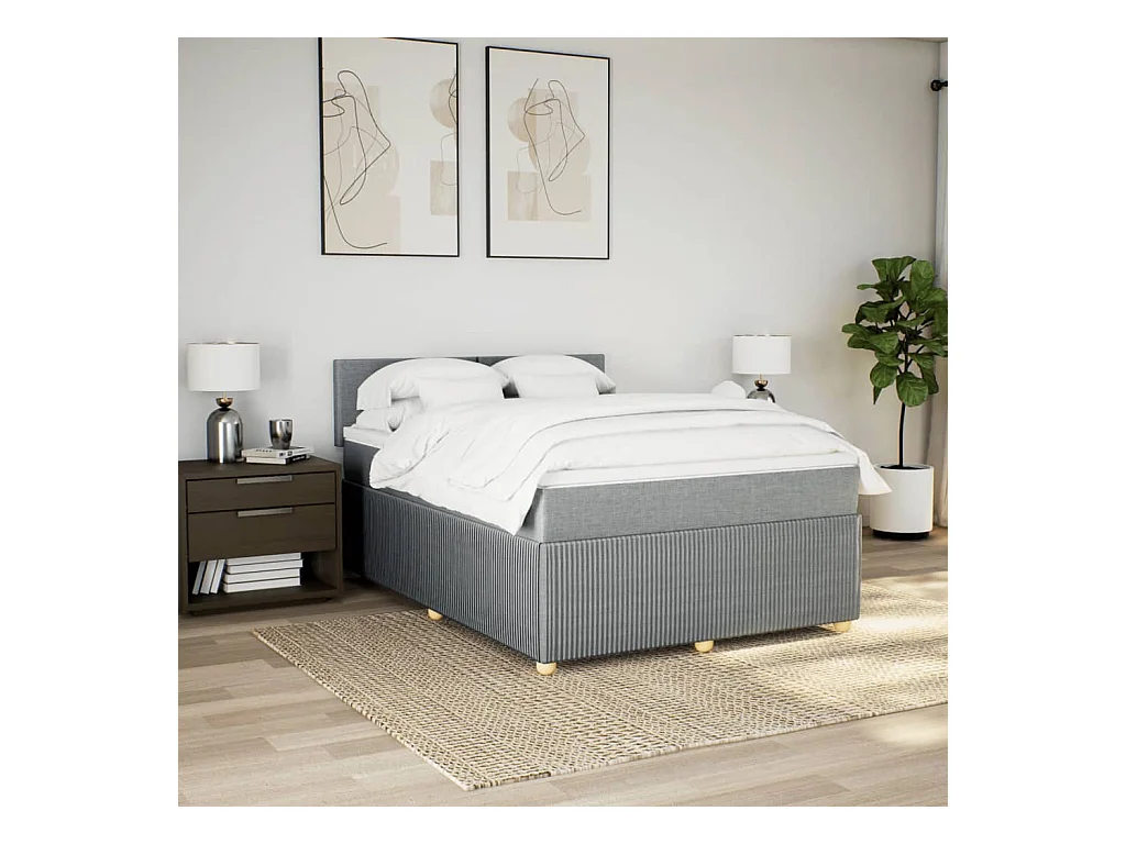 Sommier à lattes de lit avec matelas Gris clair 140x190cm Tissu