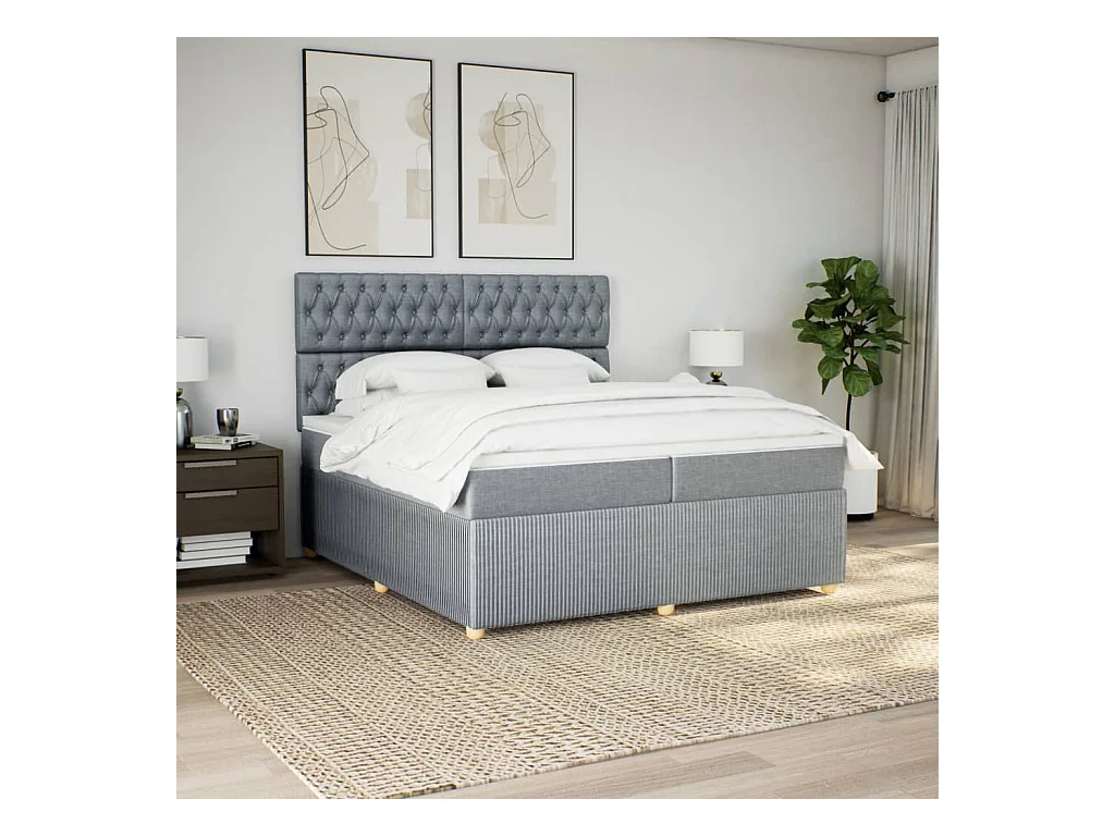 Sommier à lattes de lit avec matelas Gris clair 200x200cm Tissu