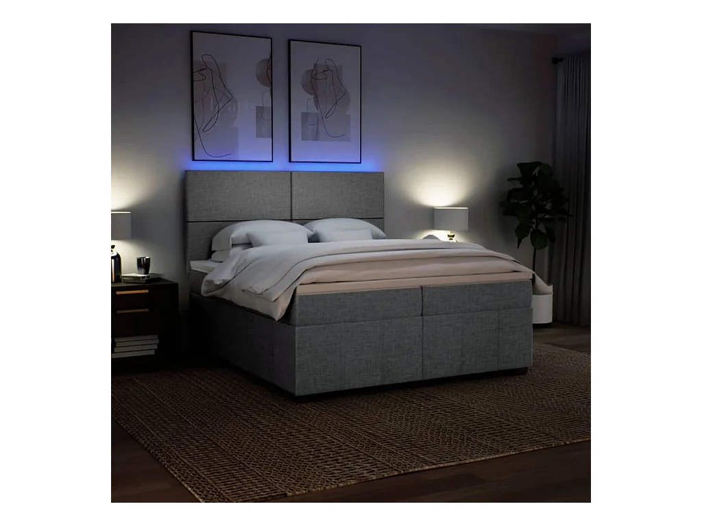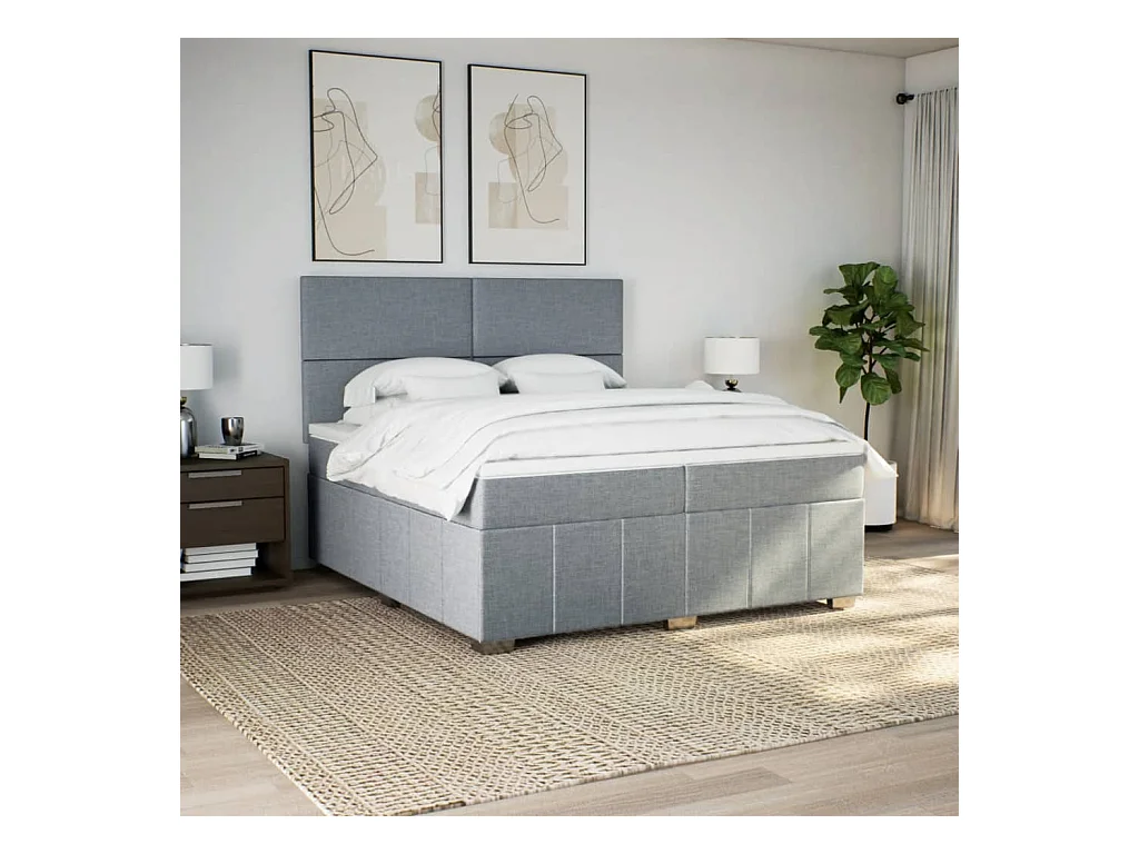 Sommier à lattes de lit avec matelas Gris clair 200x200cm Tissu