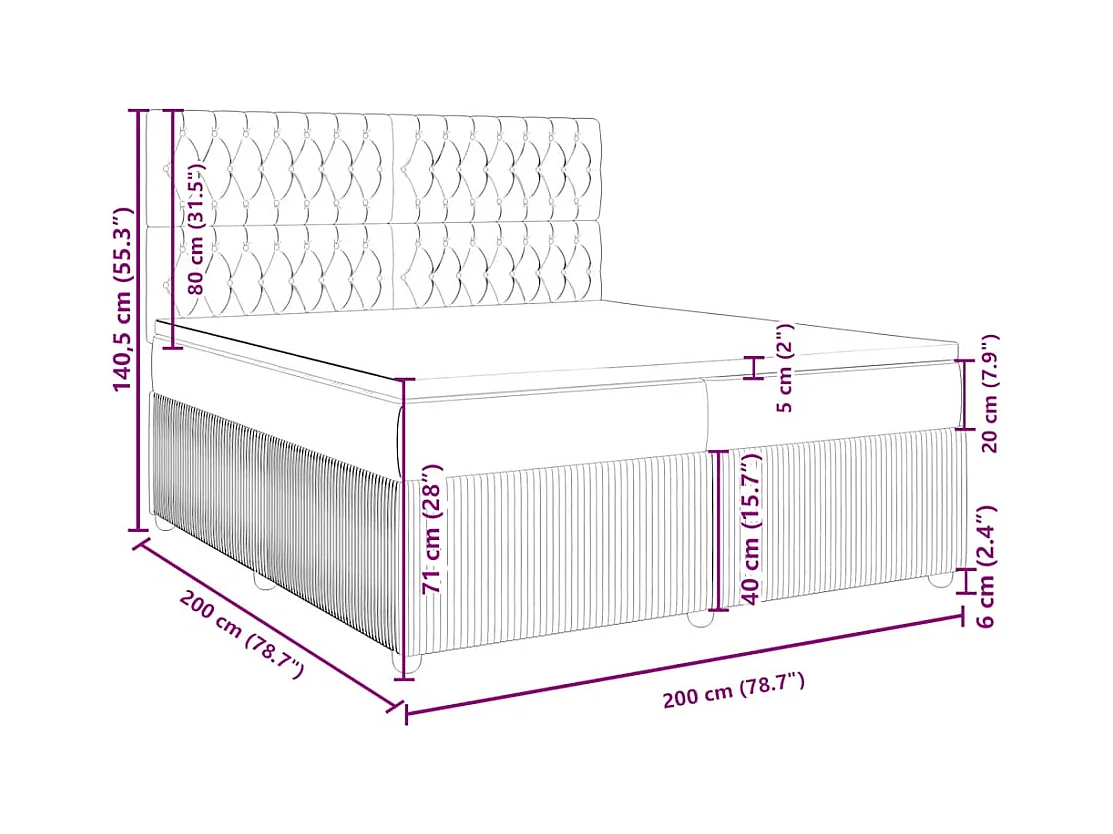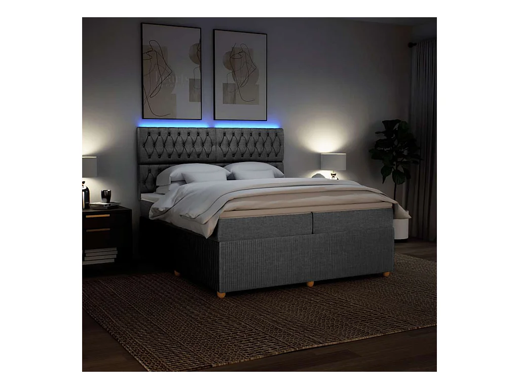 Sommier à lattes de lit avec matelas Gris foncé 200x200cm Tissu