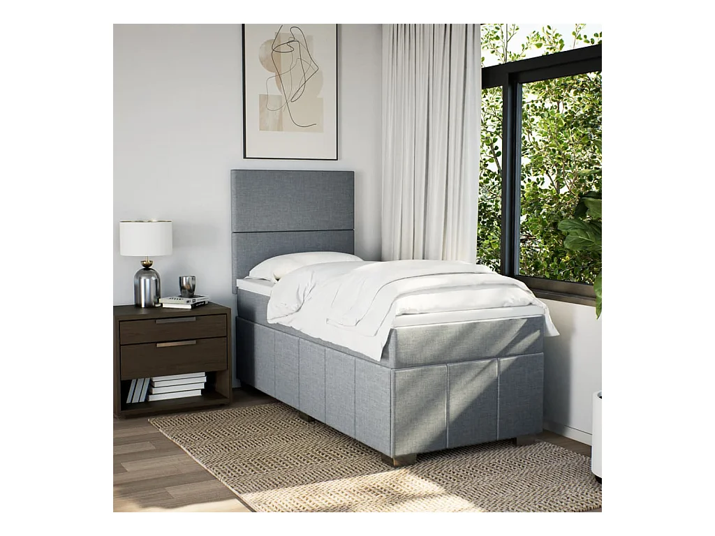 Sommier à lattes de lit avec matelas Gris clair 90x200 cm Tissu