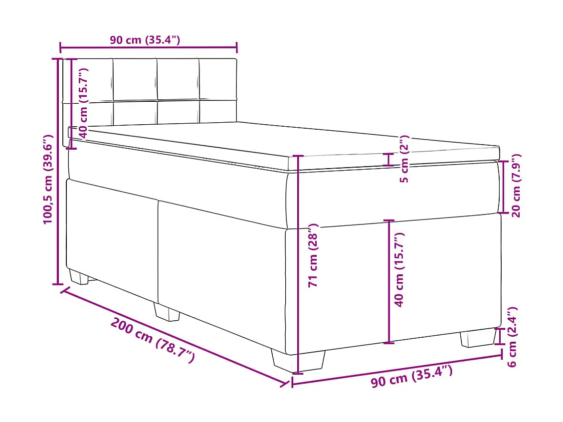 Sommier à lattes de lit avec matelas Gris foncé 90x200 cm Tissu