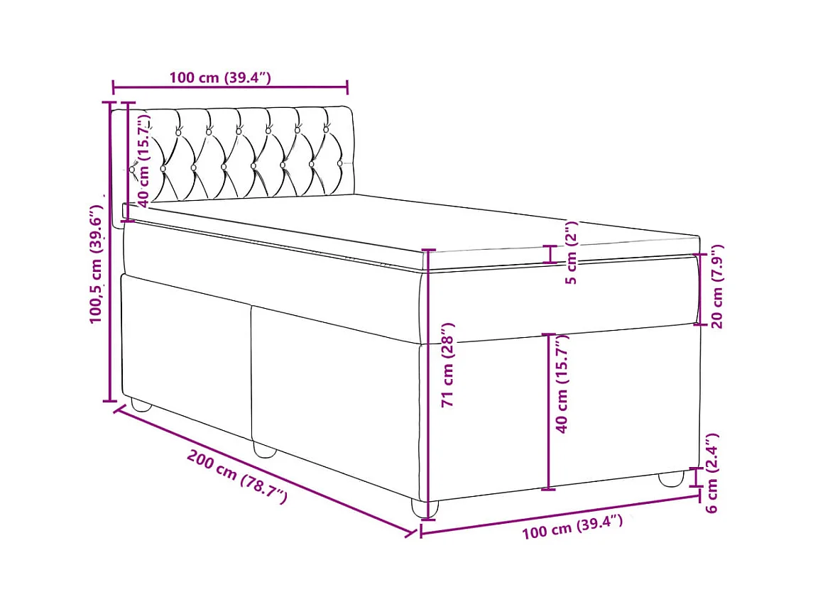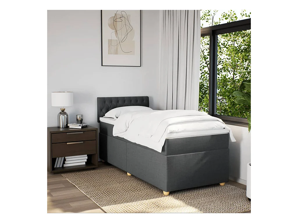Cadre de lit sans matelas gris foncé 100x200 cm tissu
