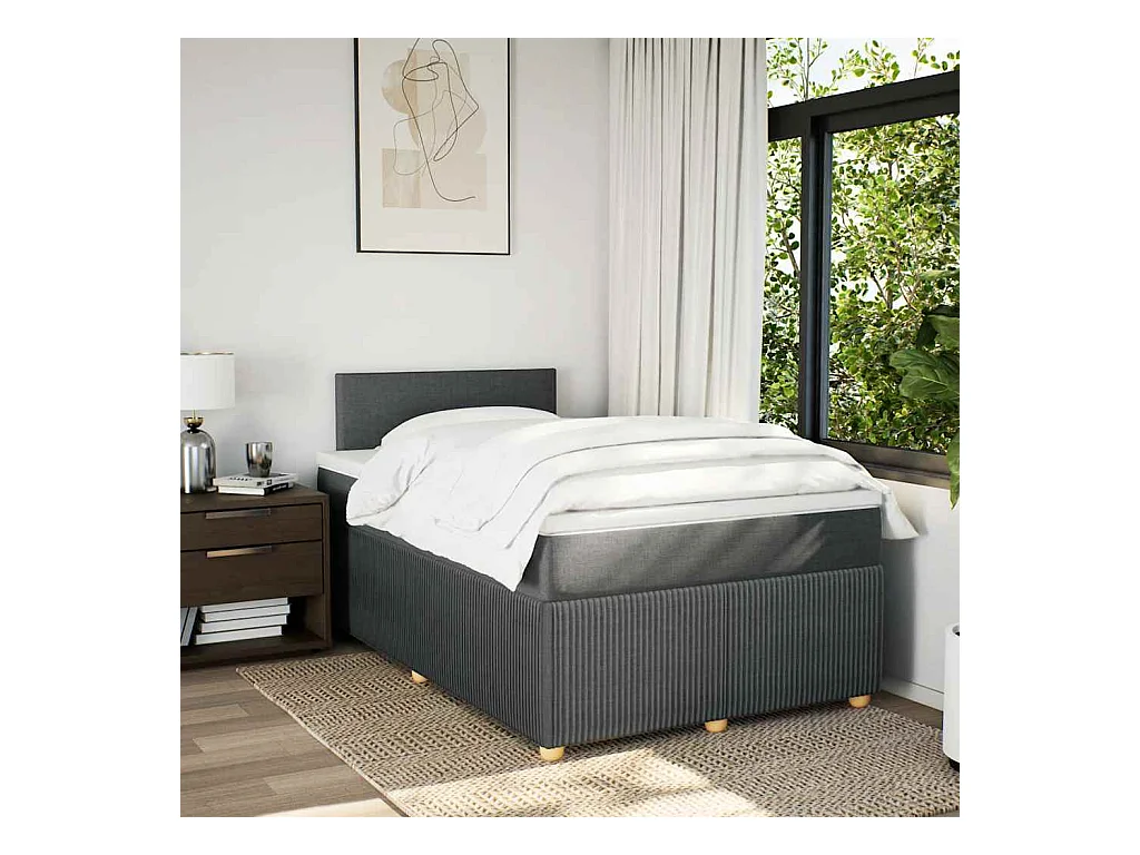 Sommier à lattes de lit avec matelas gris foncé 120x190cm tissu