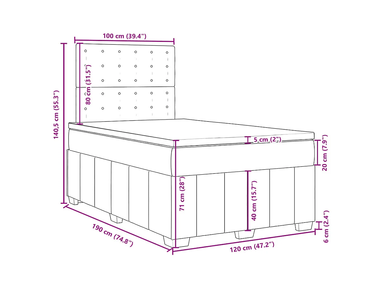 Sommier à lattes de lit avec matelas gris foncé 120x190cm tissu