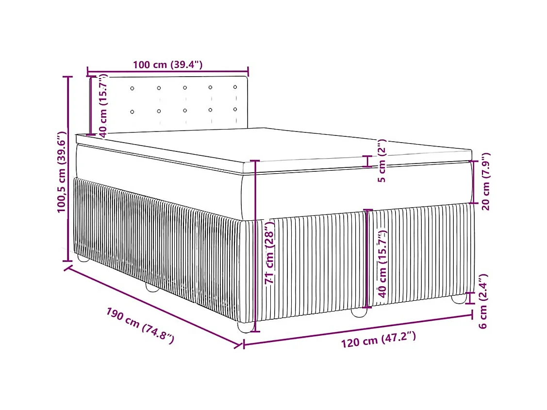 Sommier à lattes de lit avec matelas gris foncé 120x190cm tissu