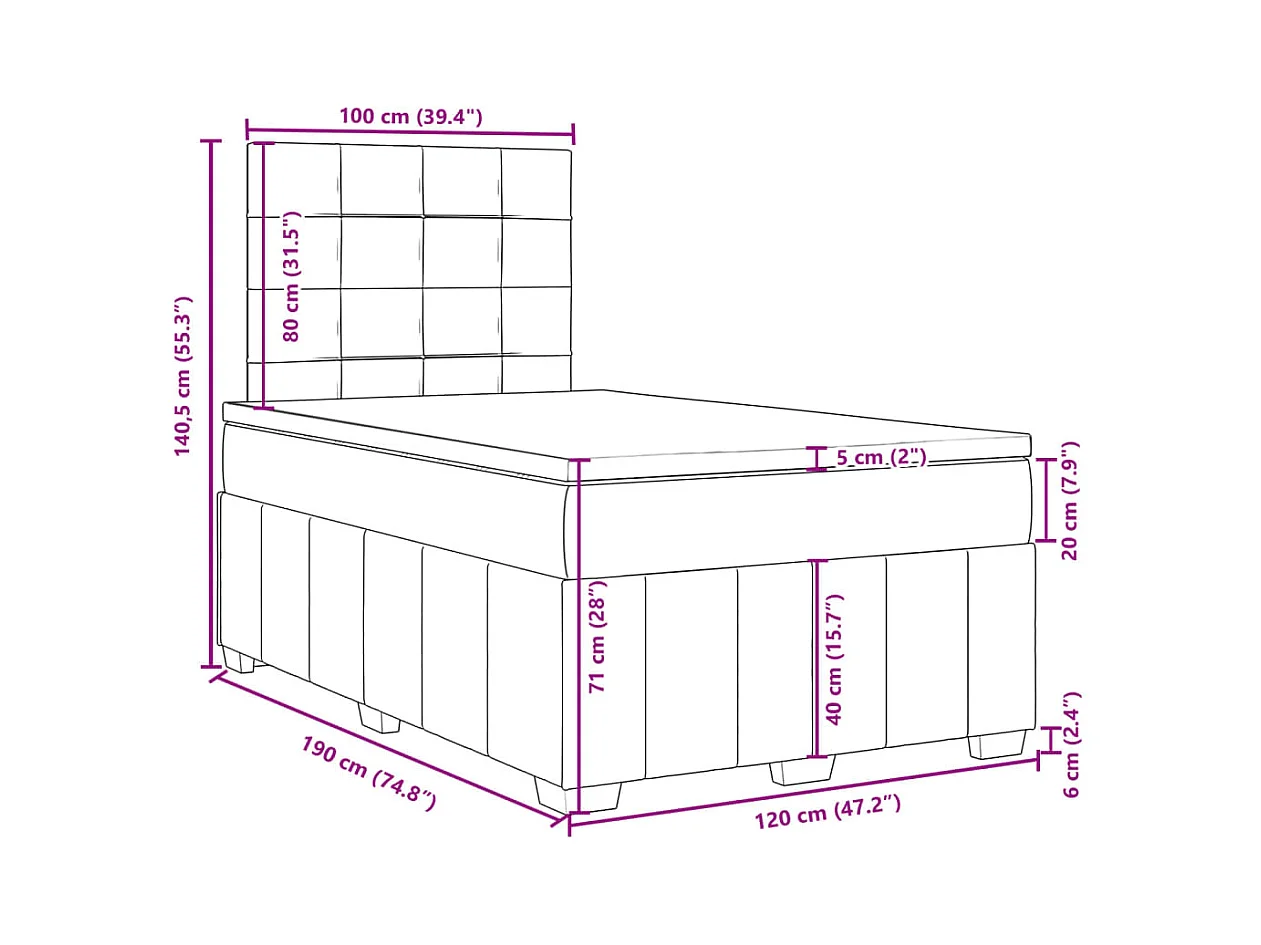 Sommier à lattes de lit avec matelas gris foncé 120x190cm tissu