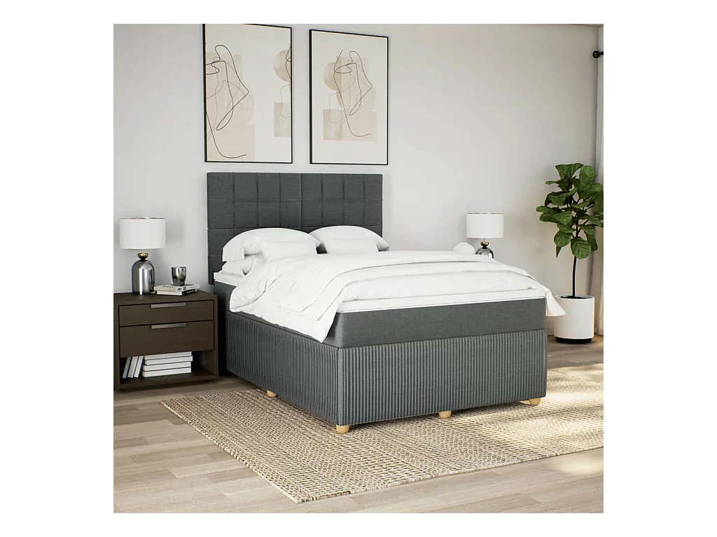 Sommier à lattes de lit avec matelas Gris foncé 140x190cm Tissu