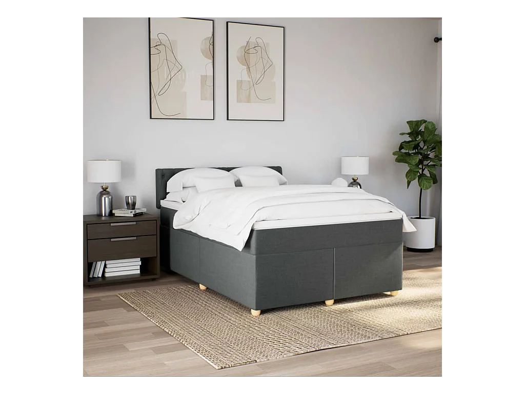 Sommier à lattes de lit avec matelas Gris foncé 140x190cm Tissu