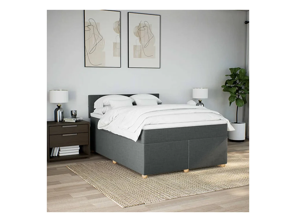 Sommier à lattes de lit avec matelas Gris foncé 140x200cm Tissu