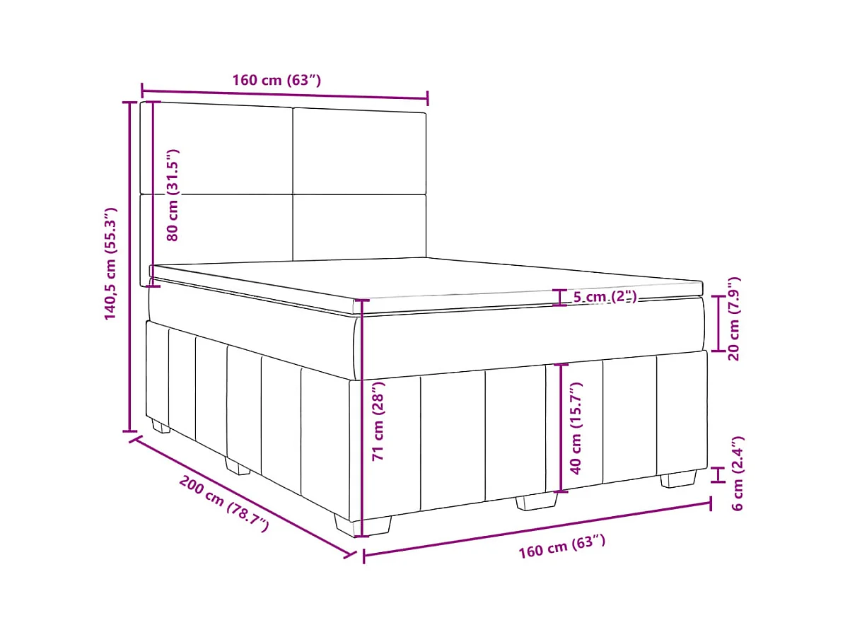 Sommier à lattes de lit avec matelas Gris foncé 160x200cm Tissu