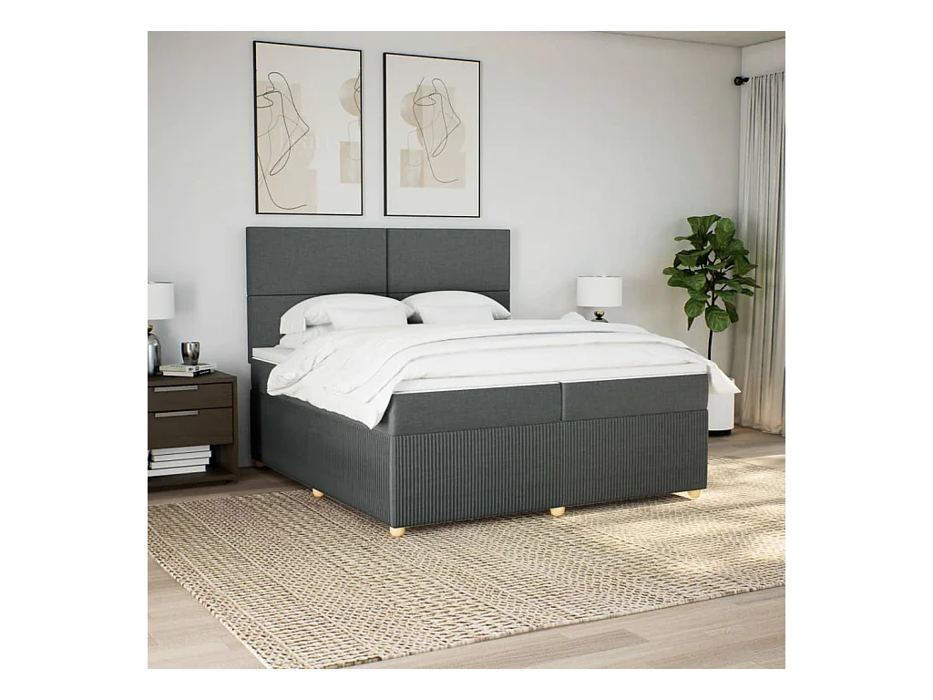 Sommier à lattes de lit avec matelas Gris foncé 200x200cm Tissu