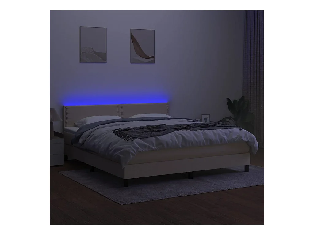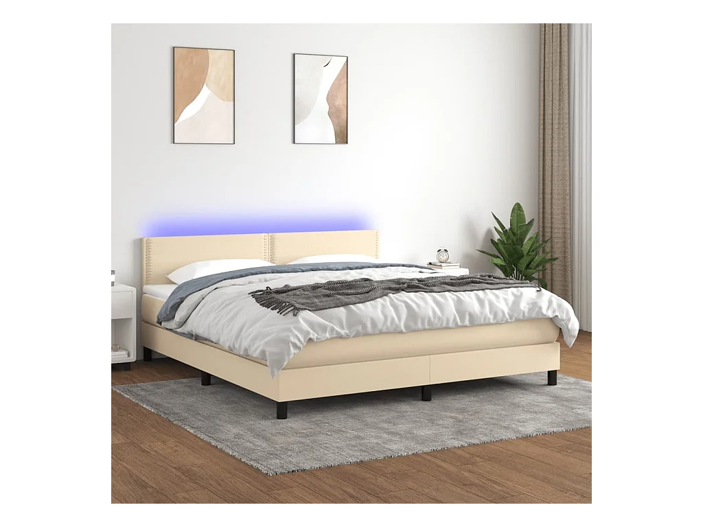 Sommier à lattes de lit avec matelas LED Crème 180x200 cm Tissu