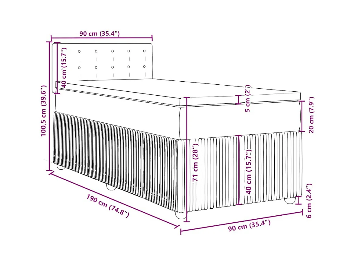 Cadre de lit sans matelas avec tête de lit 90x190 cm