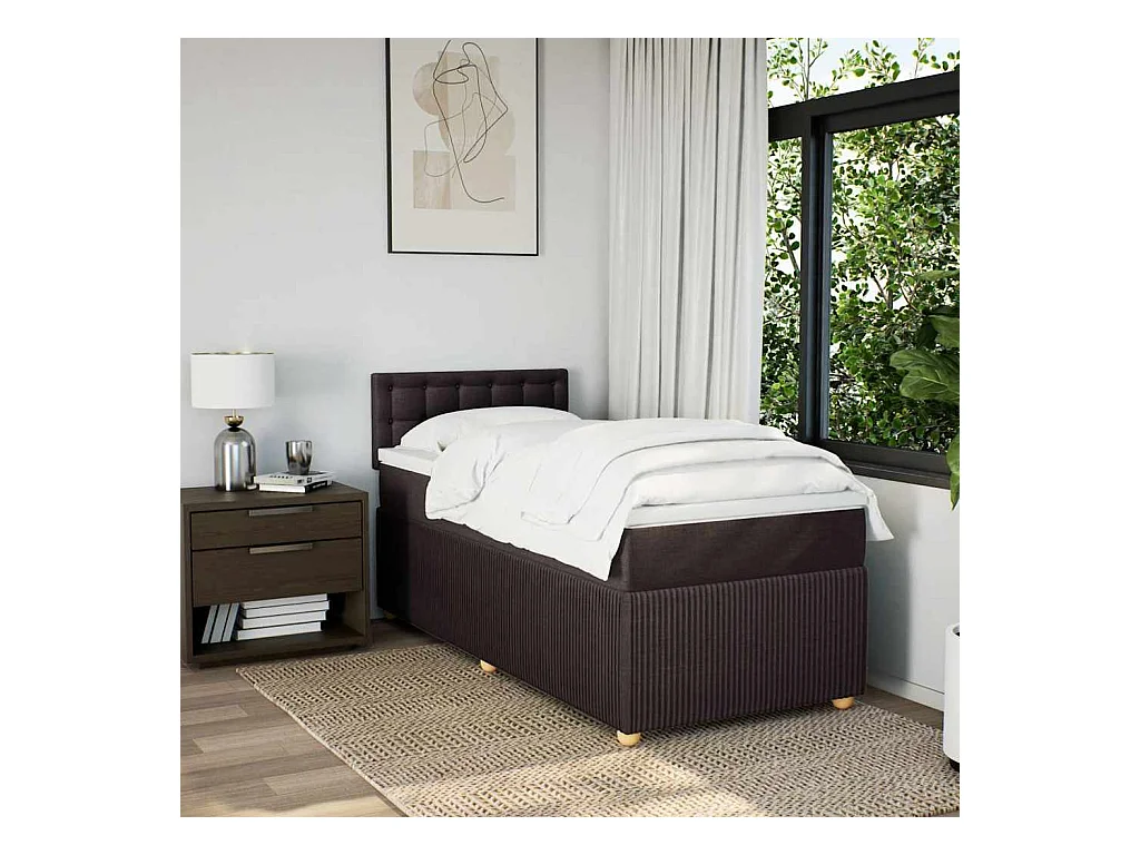 Cadre de lit ottoman avec matelas marron foncé 90x190 cm tissu
