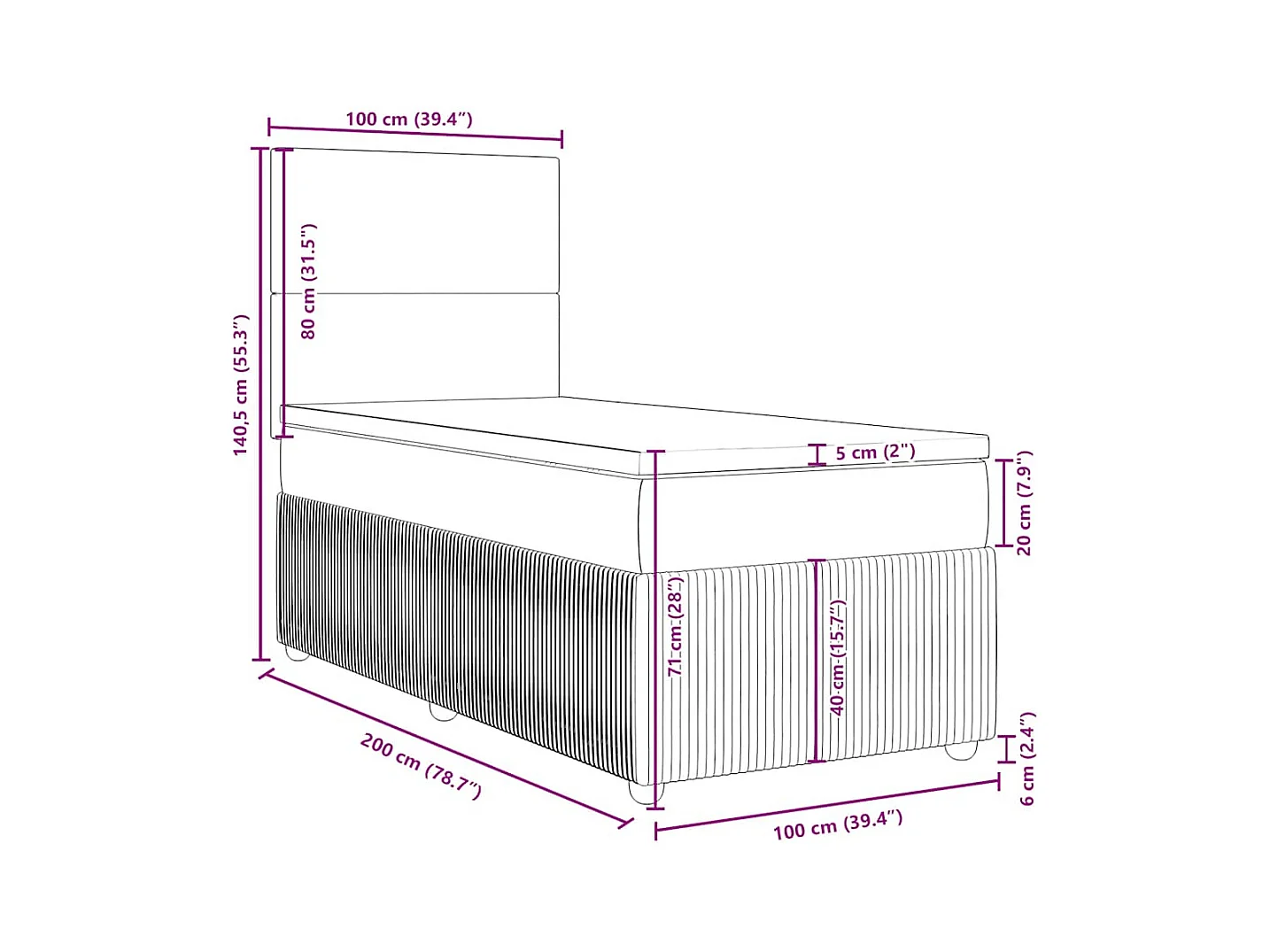 Sommier à lattes de lit avec matelas Noir 100x200 cm Velours