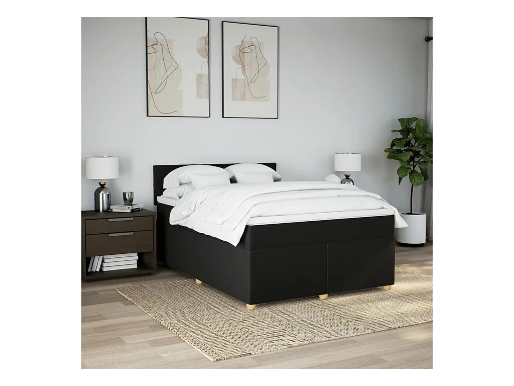 Sommier à lattes de lit avec matelas Noir 140x190 cm Tissu