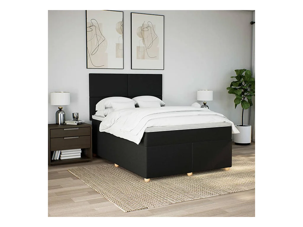 Sommier à lattes de lit avec matelas Noir 140x190 cm Tissu