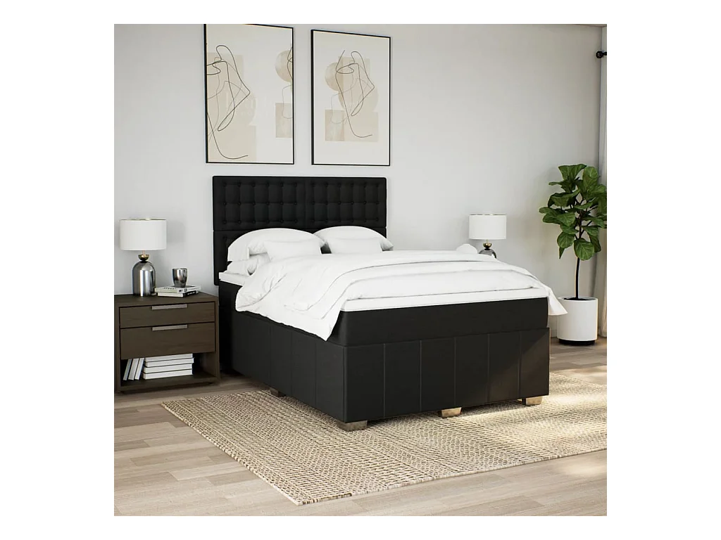 Sommier à lattes de lit avec matelas Noir 140x190 cm Tissu