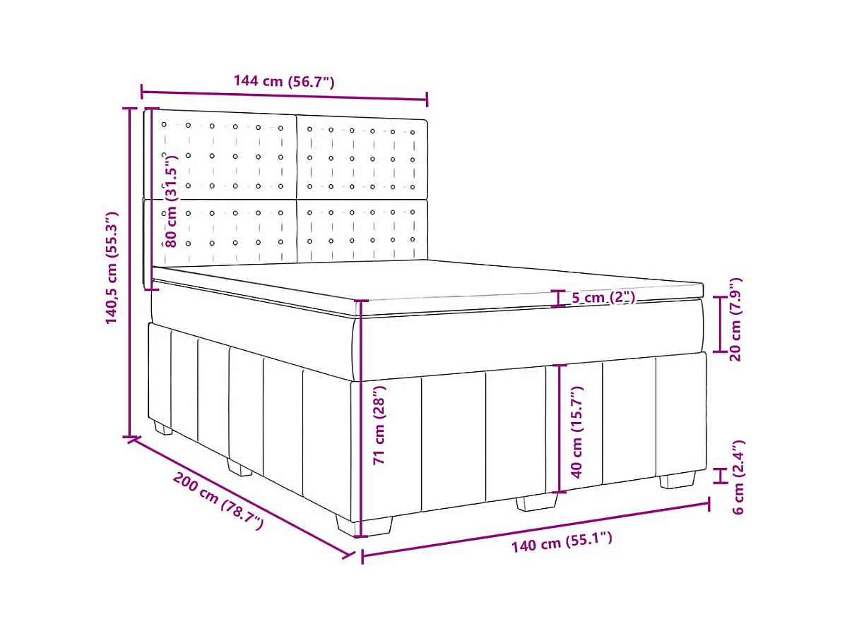 Cadre de lit avec matelas Noir 140 x 200 cm Velours