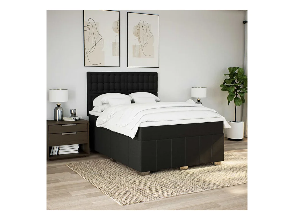 Sommier à lattes de lit avec matelas Noir 140x200 cm Tissu