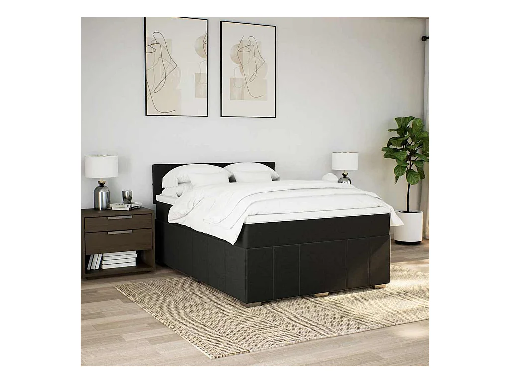 Sommier à lattes de lit avec matelas Noir 140x200 cm Tissu