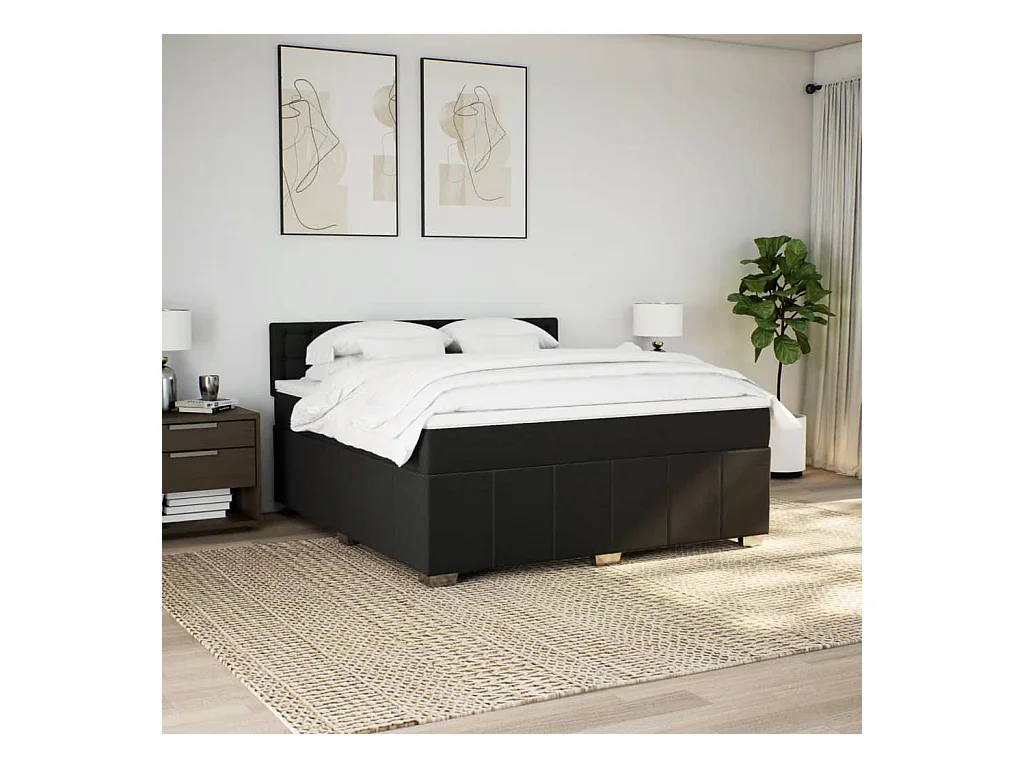 Sommier à lattes de lit avec matelas Noir 180x200 cm Tissu