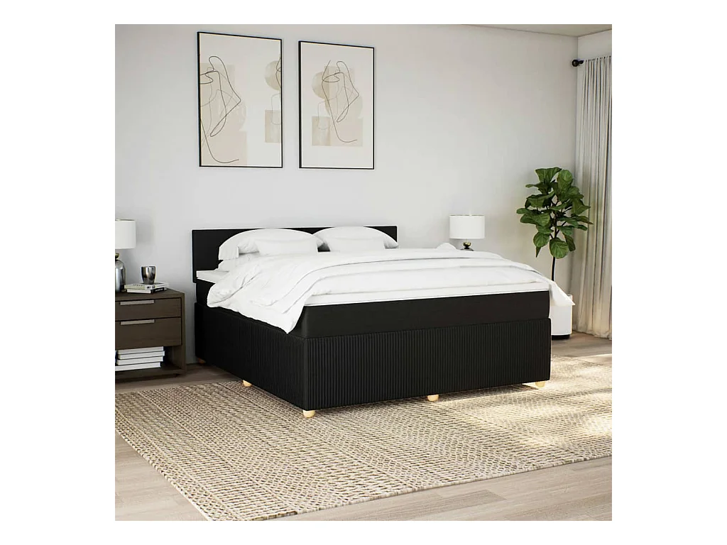 Sommier à lattes de lit avec matelas Noir 180x200 cm Tissu
