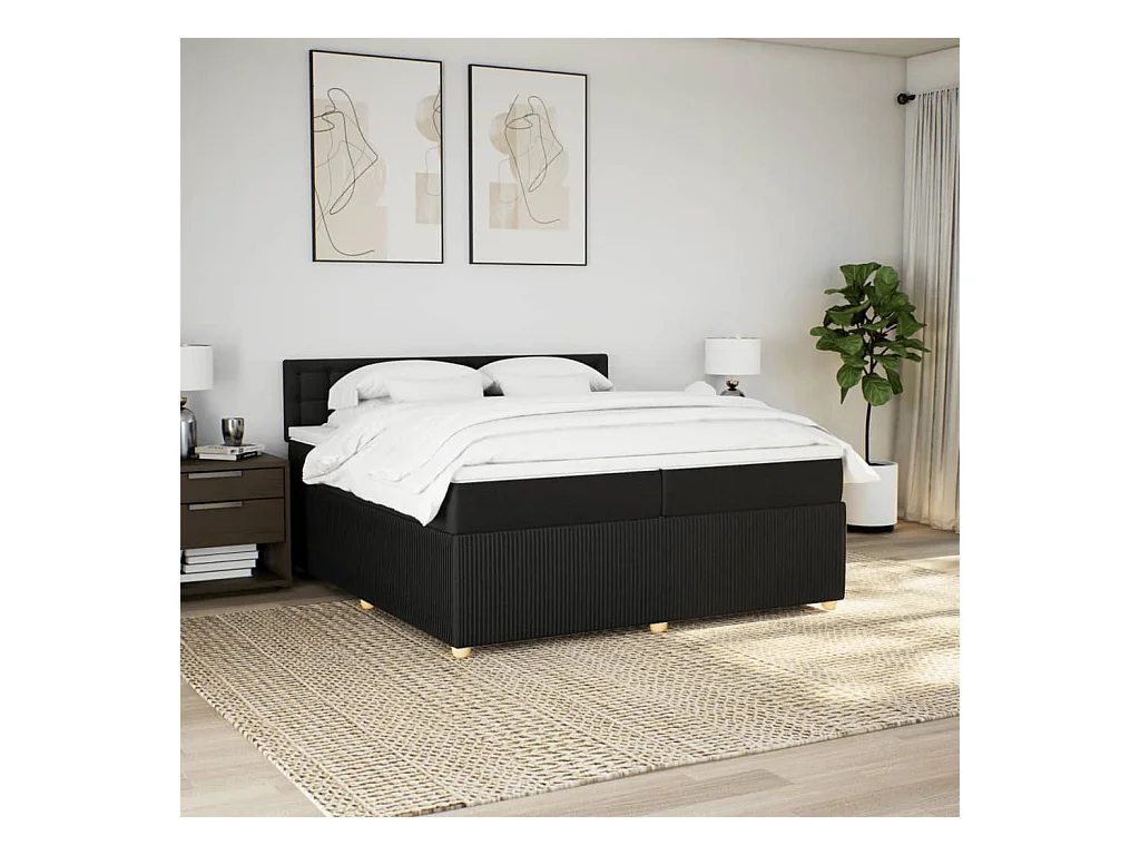 Sommier à lattes de lit avec matelas Noir 200x200 cm Tissu