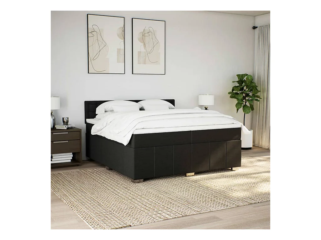 Sommier à lattes de lit avec matelas Noir 200x200 cm Tissu