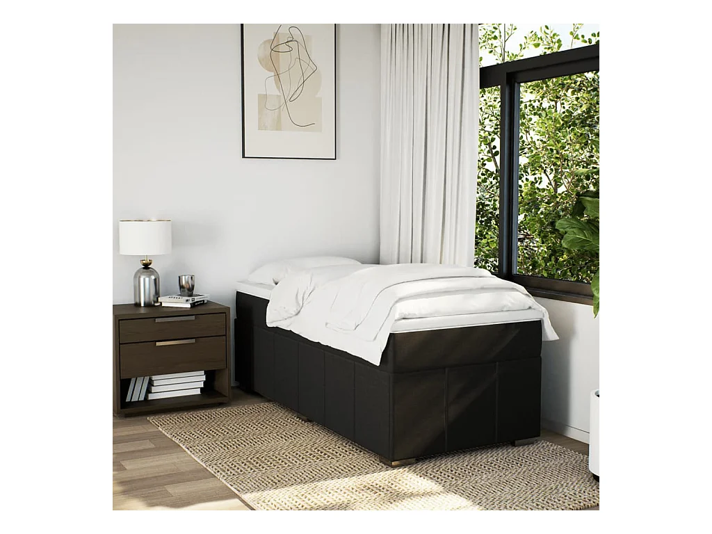 Sommier à lattes de lit avec matelas Noir 90x190 cm Tissu