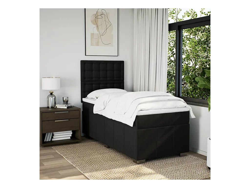 Sommier à lattes de lit avec matelas Noir 90x190 cm Tissu