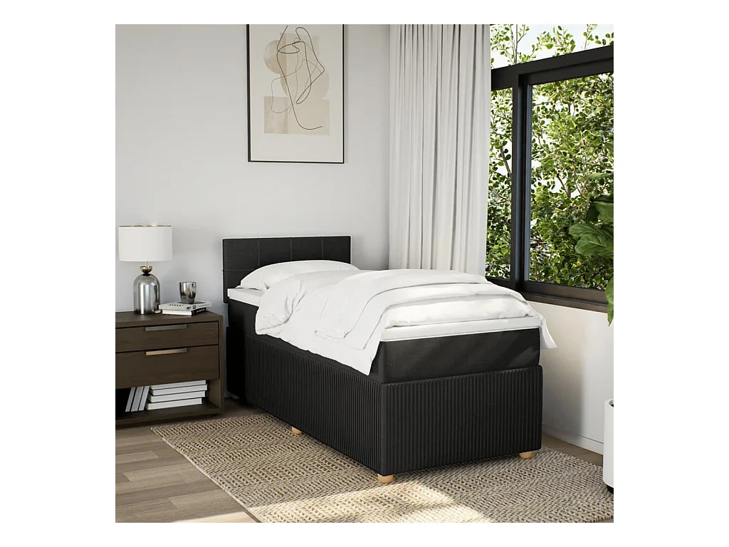Sommier à lattes de lit avec matelas Noir 90x200 cm Tissu
