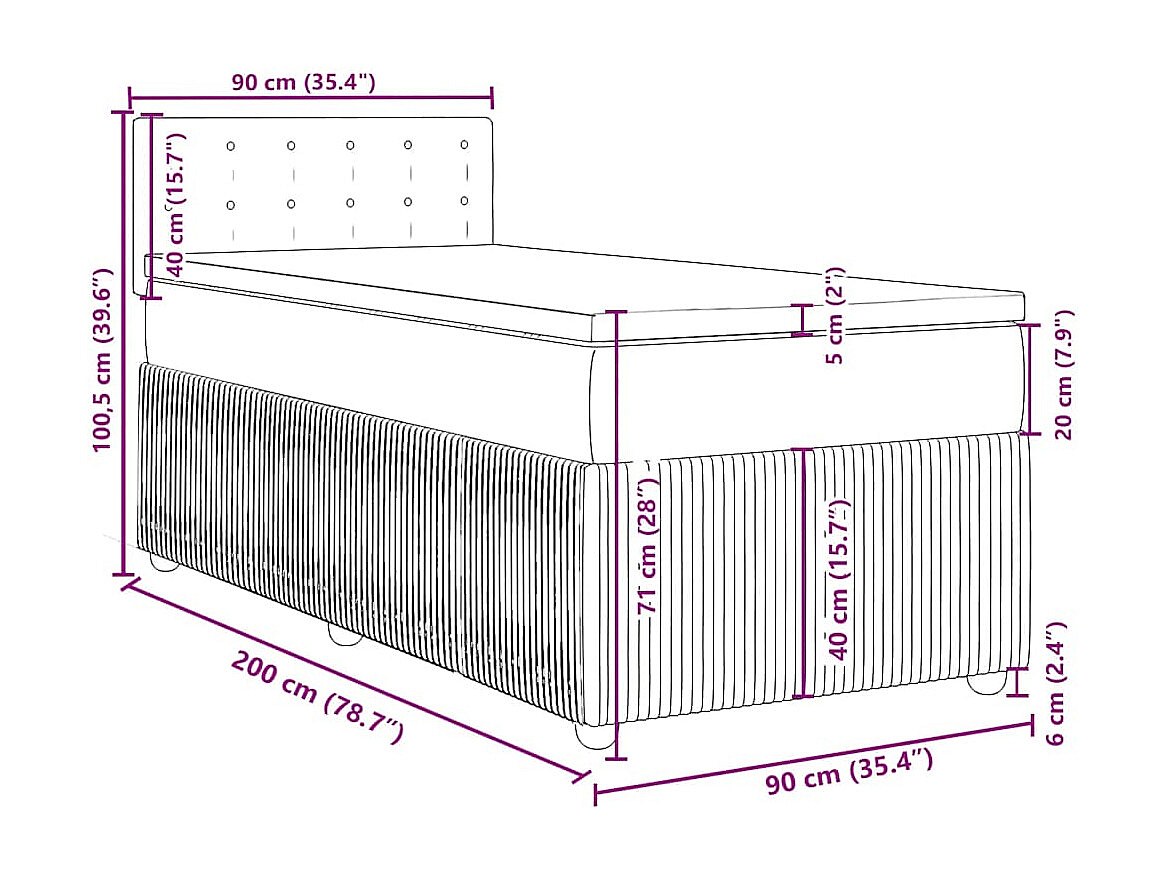Sommier à lattes de lit avec matelas Noir 90x200 cm Velours
