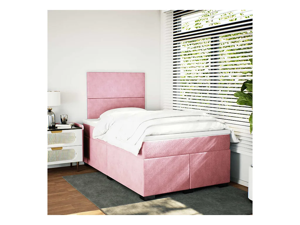 Sommier à lattes de lit avec matelas rose 120x190 cm velours